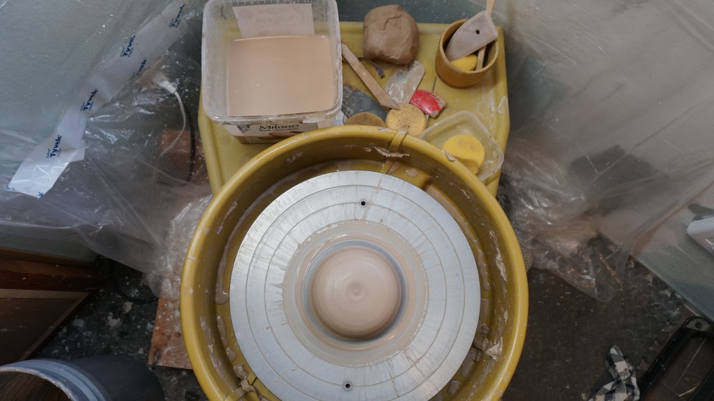 Centrowanie gliny przypomina proces przywracania równowagi w sobie. Gdy porozrzucane cząsteczki emocji wracają do centrum, tworzą harmonijnie ułożone warstwy, z których będzie można stworzyć naczynie.
