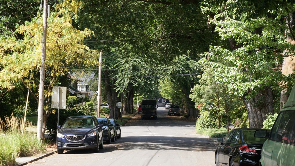 Przeważająca większość domów w których przebywam cechuje styl północnopacyficzny. Z założenia miał on odzwierciedlać unikalne warunki klimatyczne naszego regionu, a przestrzeń do życia była tworzona z myślą o harmonii z otaczającą przyrodą. Budynki często wkomponowują się w krajobraz, a do ich budowy wykorzystywano lokalne materiały, takie jak drewno, kamień i szkło. Kolorystyka również odzwierciedla barwy natury – zieleń lasów, szarość skał, brązy i beże – domy mają więc stonowane, ziemiste kolory, które wtapiają się w naturalne otoczenie. Ich wnętrza zazwyczaj posiadają otwarty plan, gdzie kuchnia, jadalnia i salon łączą się w jedną, wspólną przestrzeń. Wysokie sufity i duże, panoramiczne okna dodają im lekkości i pogłębiają uczucie otwartości. Powoli więc oswajam przestrzeń miejską, jak i tę mieszkalną, domową, a przy tym równocześnie zaznajamiam się z pejzażem ludzkim. Zdarzają się dni, gdy natrafiam na gości, są to krótkie, życzliwe i ciepłe interakcje, przyglądam się inności Amerykanów i myślę sobie, jak bardzo są różni od naszych polskich ojców i matek. Są też takie momenty, gdy idąc ulicą, niosąc przy tym ciężką torbę na ramieniu i swój organizer na detergenty, mimochodem spuszczam wzrok, jakbym nie chciała zostać zauważona. Oswajam też i te chwile, nie nadając im w mej głowie wielkiego znaczenia. Pod koniec dnia przyjeżdżam do biura, naszej bazy, punktu zero, gdzie widzę uśmiechnięte twarze, twarze osób, które niosą swoje osobiste historie, które przyjechały do tego kraju być może w poszukiwaniu lepszego jutra.